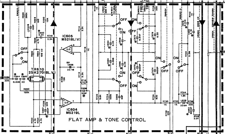 Na zakończenie opisu końcówki mocy warto dodać, że zbudowana jest na porządnych komponentach, jak choćby niskoszumne tranzystory 2SA970/2SC2240, 2SA1145/2SC2705, czy świetną parą tranzystorów sterujących 2SA1306/2SC3298 stosowaną przynajmniej do lat 90’tych przez innych uznanych producentów sprzętu audio. Całość jest bardzo dobrze przemyślana i wykonana. Wystarczy porównać schematy końcówki mocy z innymi wzmacniaczami tzw. najwyższymi modelami, by dostrzec, że ten wzmacniacz to zdecydowanie coś więcej niż dobra legenda vintage, a mimo skomplikowania i ilości elementów, parametry szumowe czy poziom zniekształceń stoją na bardzo wysokim poziomie do dziś. Ponadto warto zauważyć, że takie skomplikowanie znacząco podniosło koszty produkcji, gdzie już w owym czasie producenci sprzętu audio zaczęli je ograniczać, przez choćby uproszczenia układów, co niestety dopadło i Yamahę wraz z modelem A-1020/A-720, ale to już materiał na inną historię. Podsumowując, całe to skomplikowane opracowanie służyło wyłącznie uzyskaniu jak najlepszej jakości dźwięku, oferuj?ąc nieprzeciętną przyjemność ze słuchania muzyki o bardzo dobrej dynamice, poziomie detali i świetnej kontroli głośników. A wszystko to w pełnym analogu, bez żadnych cyfrowych sztuczek i za rozsądną cenę.