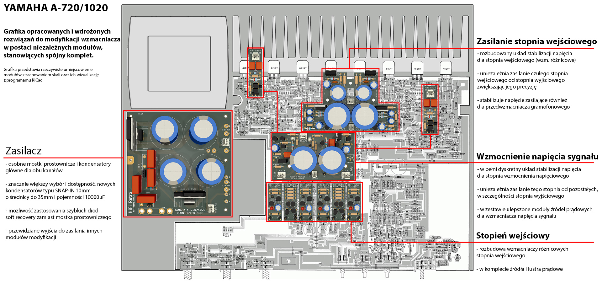KIT MODYFIKACJI WZMACNIACZA YAMAHA A-720,1020 z kanału HiFi Retro