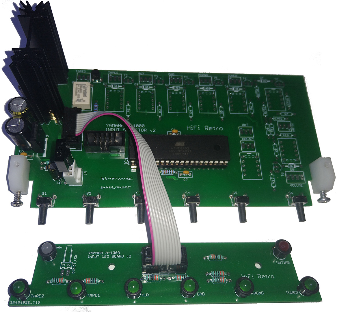 Yamaha A-1000 sterowana pilotem na podczerwień? Czemu nie, Odpowiedni moduł już na ukończeniu. Sprawdzony czy pasuje jak trzeba, niemal ukończony program dla mikrokontrolera, zostało uzupełnić przekaźniki, dokupić potencjometr z silnikiem i będzie montaż. Układ całkowicie zastępuje oryginalny selektor wejść z przełącznikami, pozwala sterować głośnością i wprowadza nową funkcjonalność - całkowite odłączanie przedwzmacniacza i granie tylko końcówką mocy (funkcja dostępna tylko z pilota). Wkrótce więcej na ten temat.